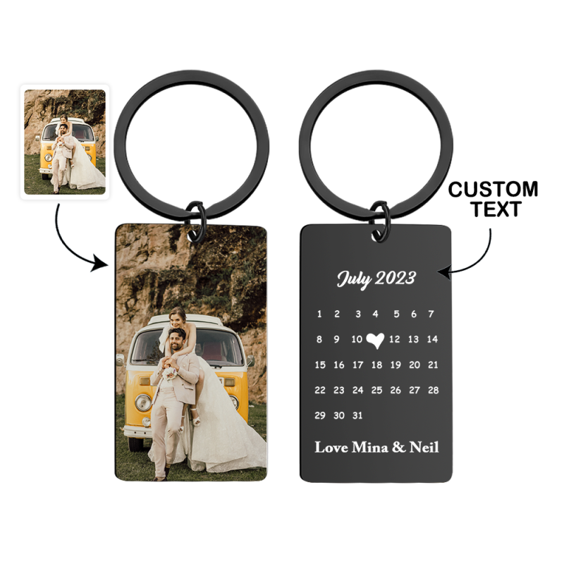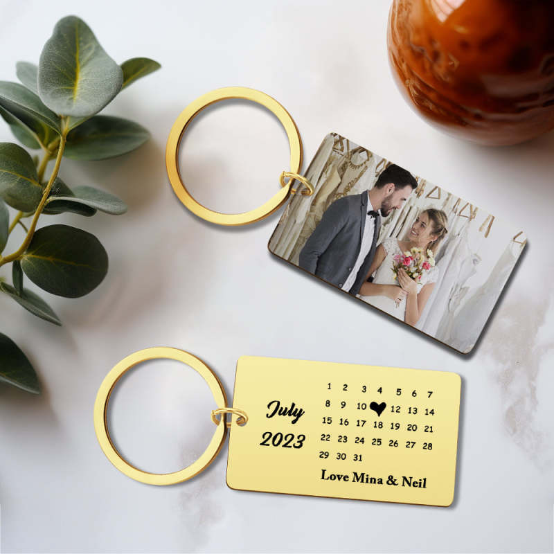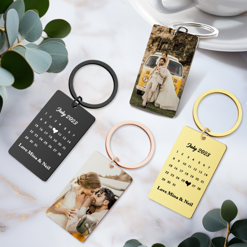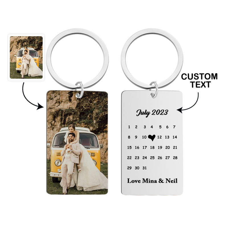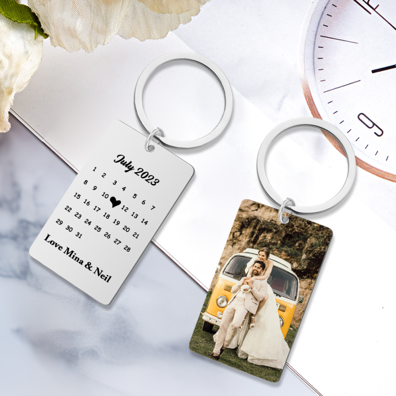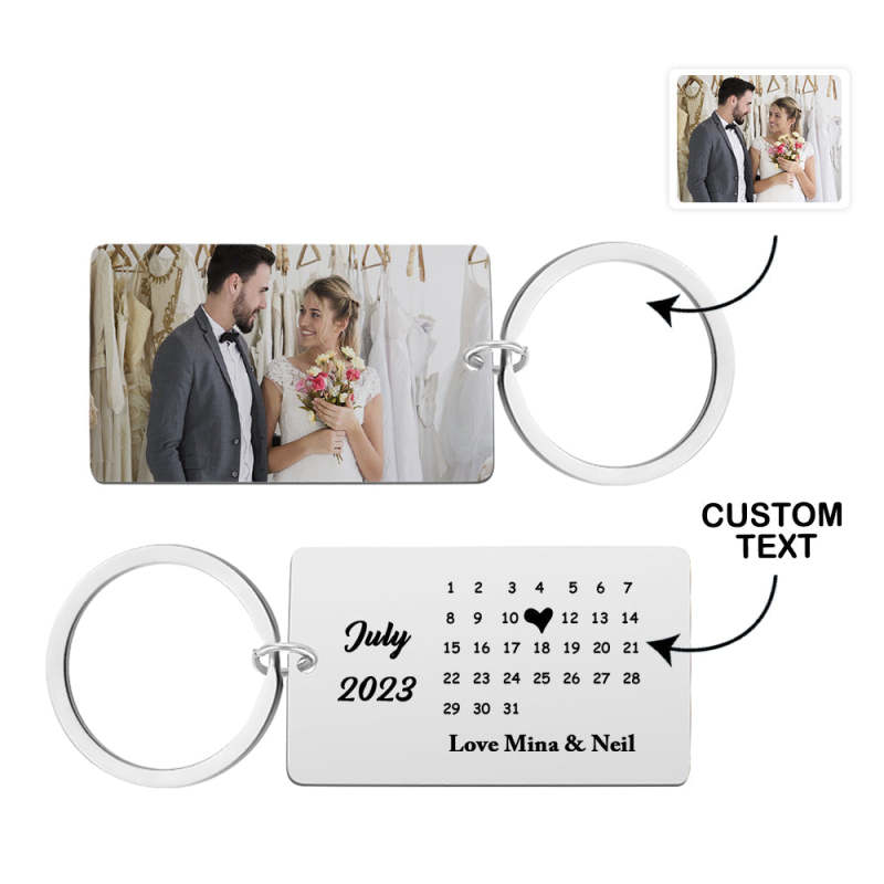 Anniversary Gift Custom Photo Keychain Personalised Calendar Keychain Save the Date Calendar Gift