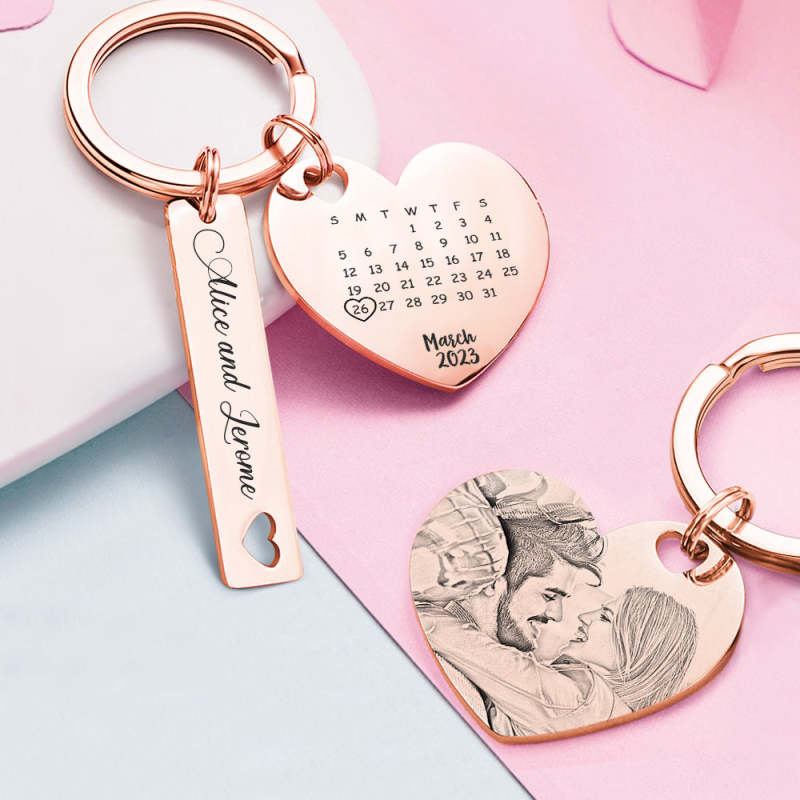 Custom Photo Calendar Keychain Personalised Save The Date Keychain Gift for Lover