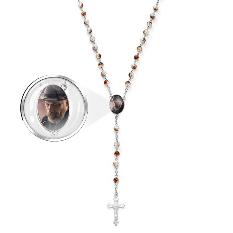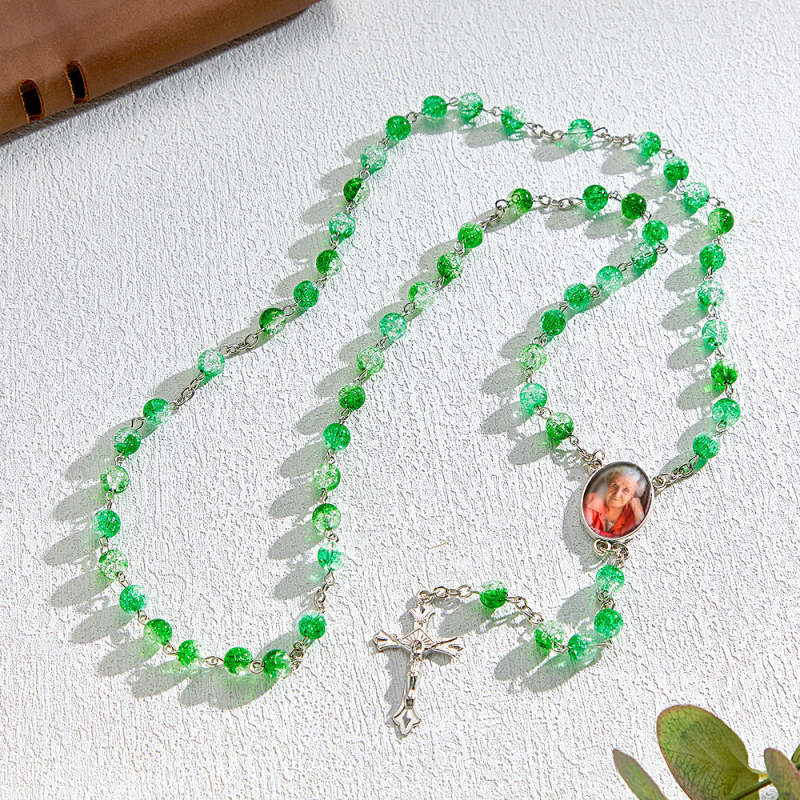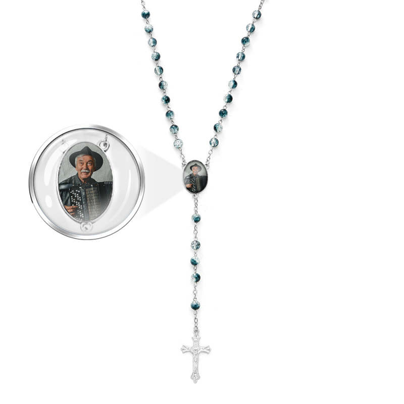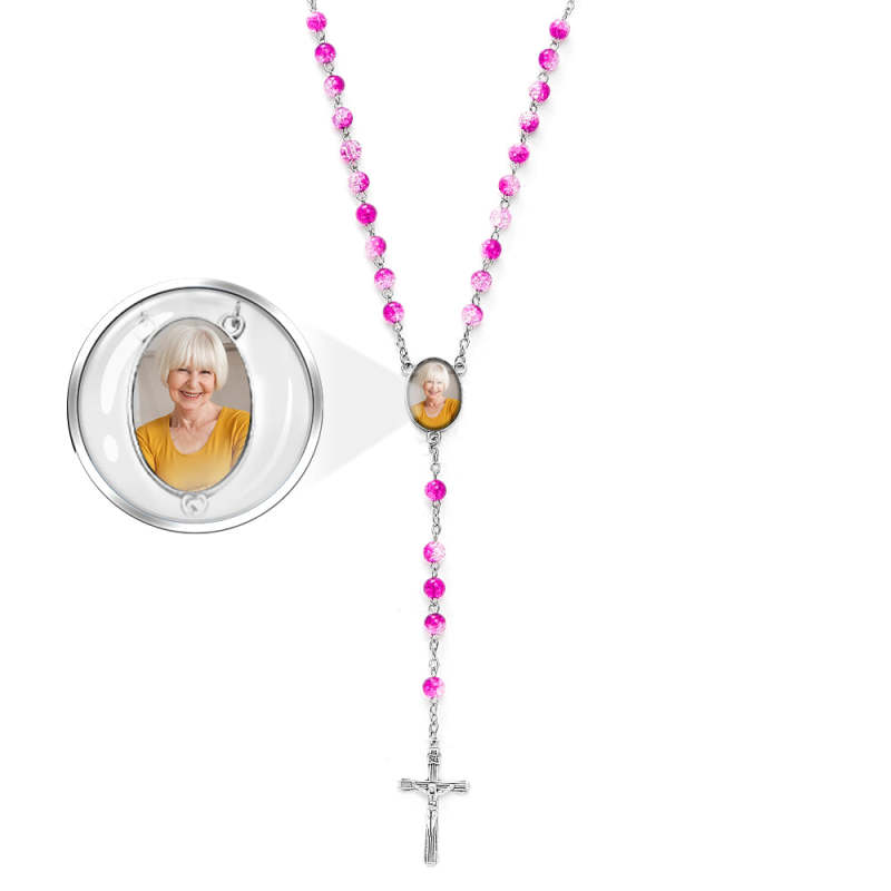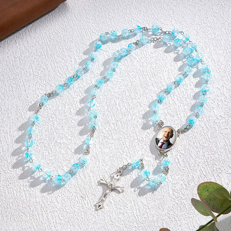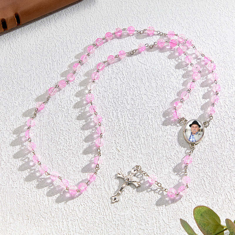 Custom Rosary Beads Cross Necklace Personalised Acrylic Explosion Beads Necklace Sentimental Memorial Gift Prayer with Photo