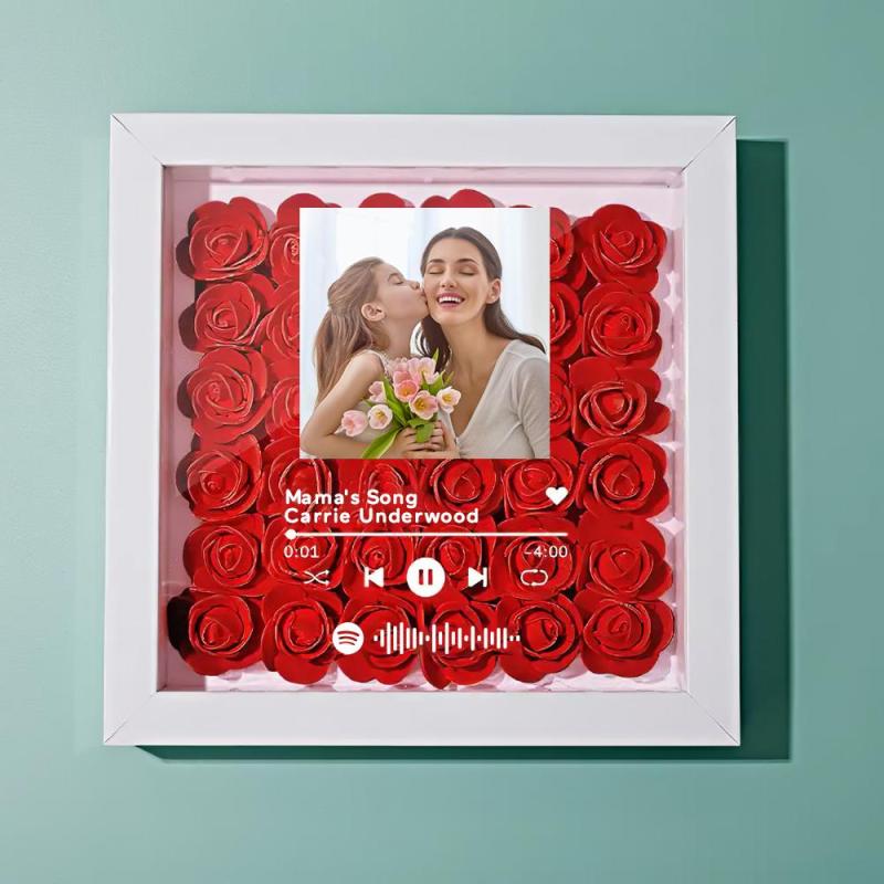 Mother's Day Gift Custom Scannable Spotify Code Photo Music Flower Shadow Box Personalised Flower Shadowbox Frame Gift For Mom