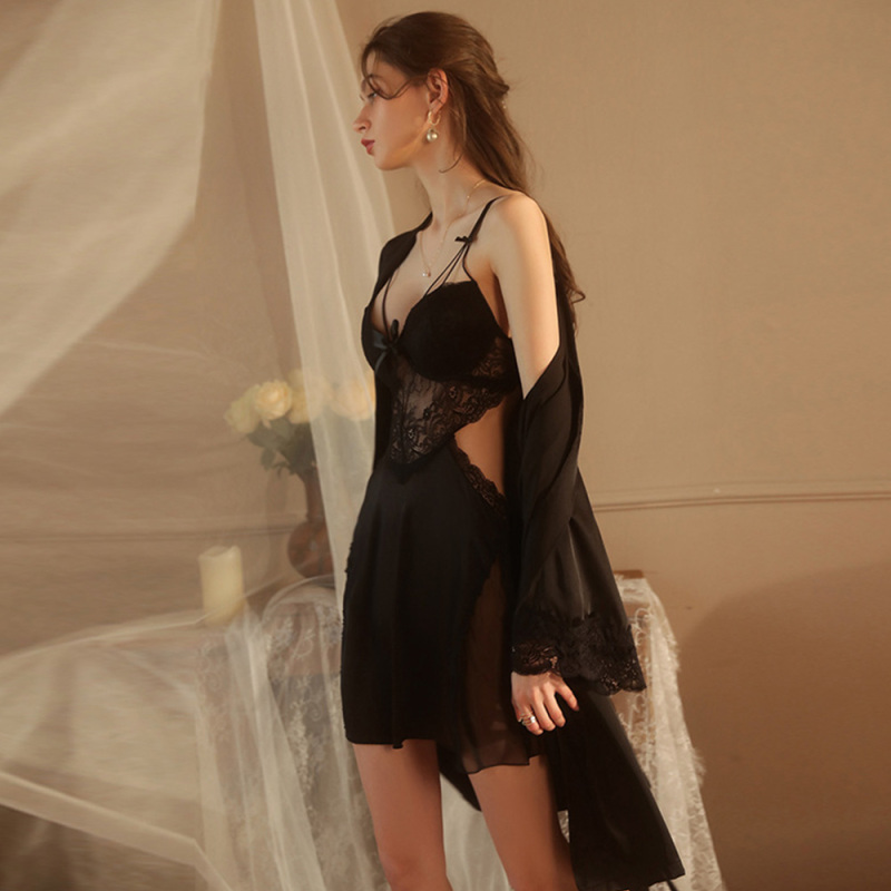 Designed to celebrate your curves, this provocative yet comfortable lingerie-inspired set combines supportive underwire with delicate sheer lace. Perfect for special moments or when you simply want to feel extraordinary at home.