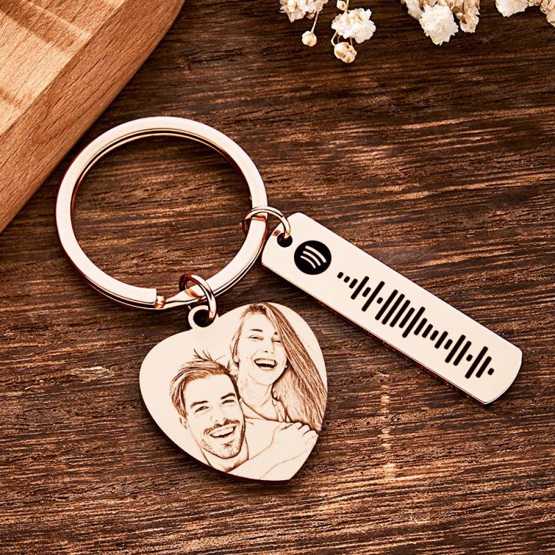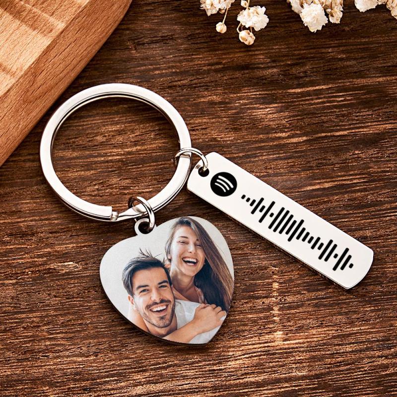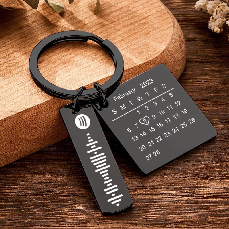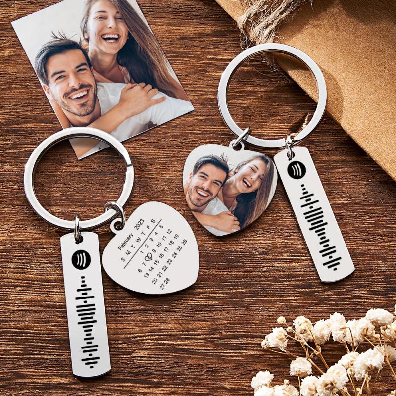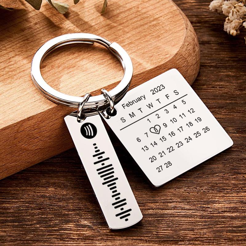 Personalised Calendar Keychain Special Day Significant Photo Heart Square Shape Music Code Metal Keychain Anniversary Gift