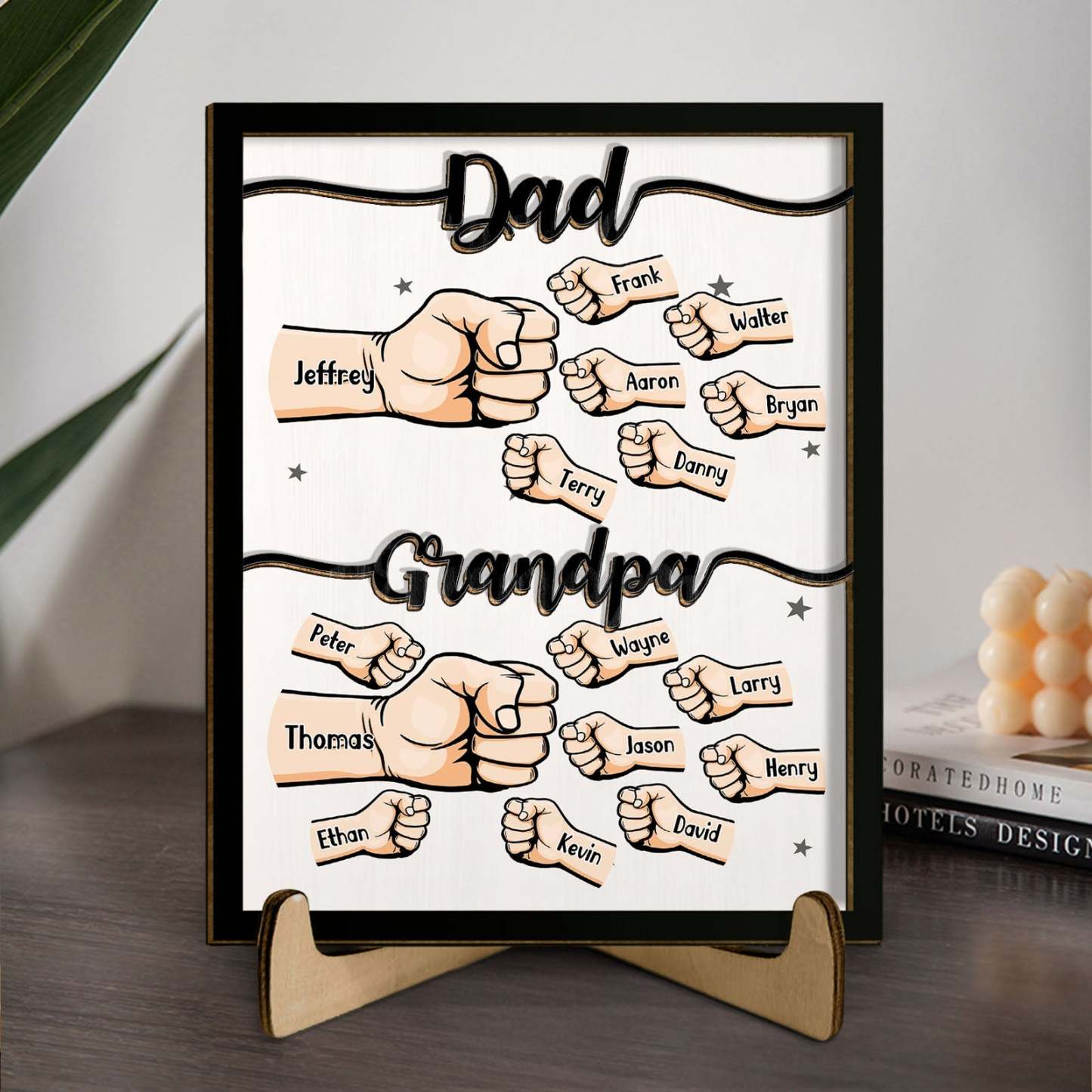 Personalised Names Fists Bump Dad Grandpa Wooden Plaque Father's Day Gift